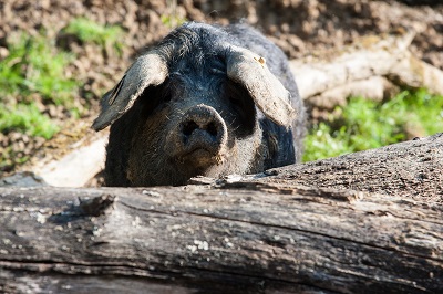 Zelfredzaam De Bigorre is een dier dat niet veeleisend is en zomer en winter autonoom buiten leeft. Hij heeft wel veel ruimte nodig en beweging. Anders wordt hij té vet. Zwarte varkens zoeken hun voedsel grotendeels zelf. Ze krijgen geen soja, geen maïs en geen genetisch gemanipuleerd voedsel, wat funest zou zijn voor de vleessmaak. Daar staat tegenover dat ze massa’s verse klaver verorberen en lokale graangewassen als gierst, koolzaad, zonnebloemen en rogge. In de herfst zijn er kastanjes en eikels. Die geven het vlees zijn fijne smaak en aroma. Als de biggen vijf weken oud zijn gaan ze naar de grote stal tot ze twee, maximaal drie maanden oud zijn. Dan verhuizen ze naar fokkers die hen laten opgroeien in hun natuurlijke habitat van bos en weiland, tot ze veertien maanden oud zijn. Let wel: de zwarte varkens groeien op in een omgeving met maximaal vijfentwintig dieren per hectare.