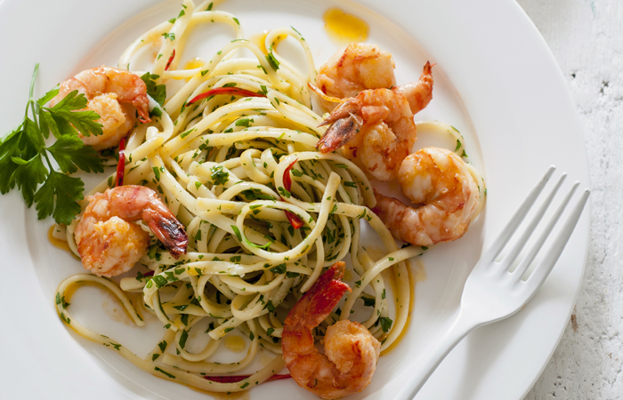 Moestuinrecept: pittige pasta met peterselie, garnalen en citroen