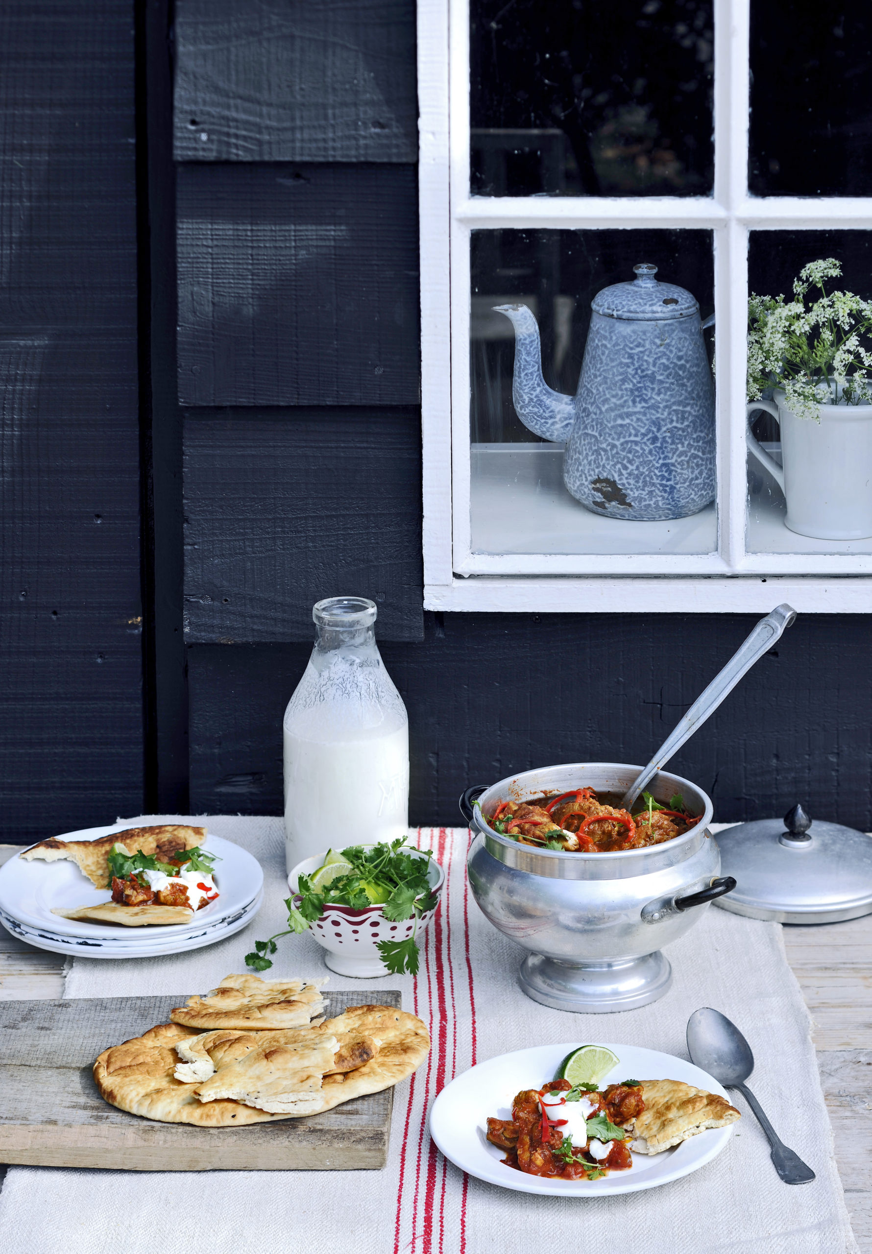 Heerlijk met rijst of naanbrood, deze pittige kip in tomaten-yoghurtsaus. Een aanrader voor de liefhebber van de oosterse keuken! Hoofdgerecht voor 4-6 personen ± 15 min voorbereiding. + marineren 5 uur + bereiding 30 min Ingrediënten: