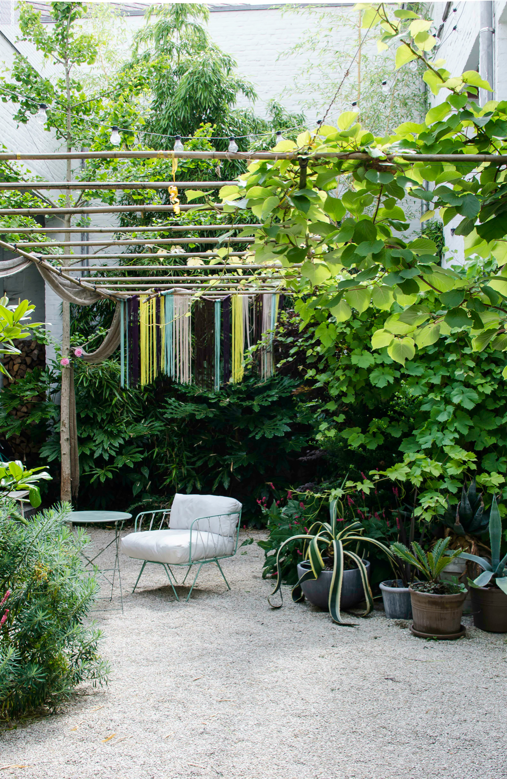 Achter het gezellige en stijlvolle café Clouds in my Coffee schuilt een urban jungle dat een instant vakantiegevoel geeft. Het is het domein van Veva van Sloun en haar man Jan Wauters. Ze toverden het terrein van een oude schoolkapel om in Clouds 9000, een plek waar je kunt ontsnappen aan de hectiek van de stad. De patiotuin bestaat uit grote groene planten waaronder bamboe, blauweregen, vingerplanten en twee ginkgobomen. Verder veel terracottapotten met onder meer aloë’s en agaves. Zelf wonen Jan en Veva in de kapel erachter, waar genoeg ruimte overbleef voor de fysieke versie van hun online-designwinkel en een B&B. Je logeert er in een loftachtige ruimte waar je slaapt op de vide onder zacht, gekreukt linnen. Dendermondsesteenweg 104, clouds9000.com