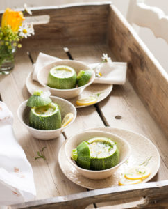 - Snijd eventueel een klein kapje van de onderkant af als de courgette te veel wiebelt.
