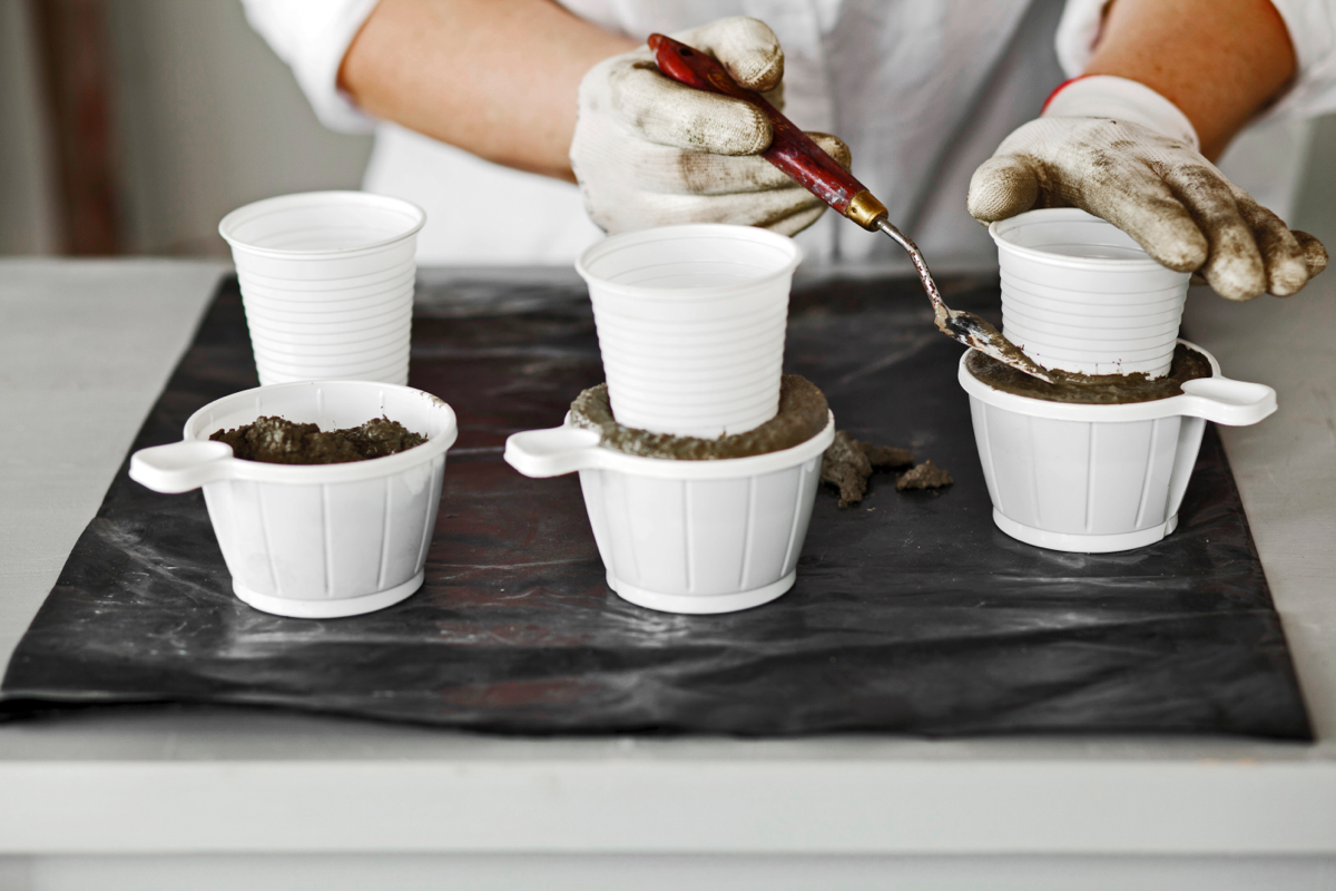 - Verwijder de beker en het theekopje als het cement uitgehard is.
