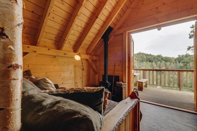 Deze streek staat bekend om zijn wildlife. Grote groepen wilde zwijnen en reeën kunnen maar zo je pad kruisen. En zelfs wolven worden weer gespot. “De laatste maand wel tien”, zegt Olivier. En wie de tijd neemt, heeft kans om het ijsvogeltje en de zeldzame waterspreeuw te zien. Gewoon vanuit de luie stoel voor de hut, weet Olivier. “En veel gasten zien hier bevers, die verderop in de rivier een dam hebben gebouwd.” boshuisje