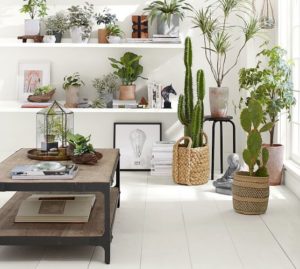 Van rotan potjes tot stenen of houten: in de warrige plantenhoekjes komt alles samen. Het lastige hier is om het niet te rommelig te maken. Aan de andere kant: ieder hoekje zijn charme toch? Wij houden hier wel van. Ook heel leuk is het om het nog meer op te leuken met passende accessoires zoals je hieronder ook veel ziet gebeuren.  Plantenhoekjes Ben jij ook dol op deze trend?