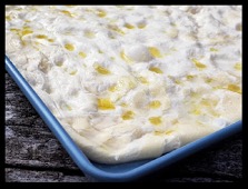9. Als de rijstijd voorbij is, herhaal de handeling van stap 9 dan nog heel lichtjes voordat je het deeg aftopt met de uiencompote. Plaats daarna de bakplaten in de oven en bak het brood in 25-30 minuten af.