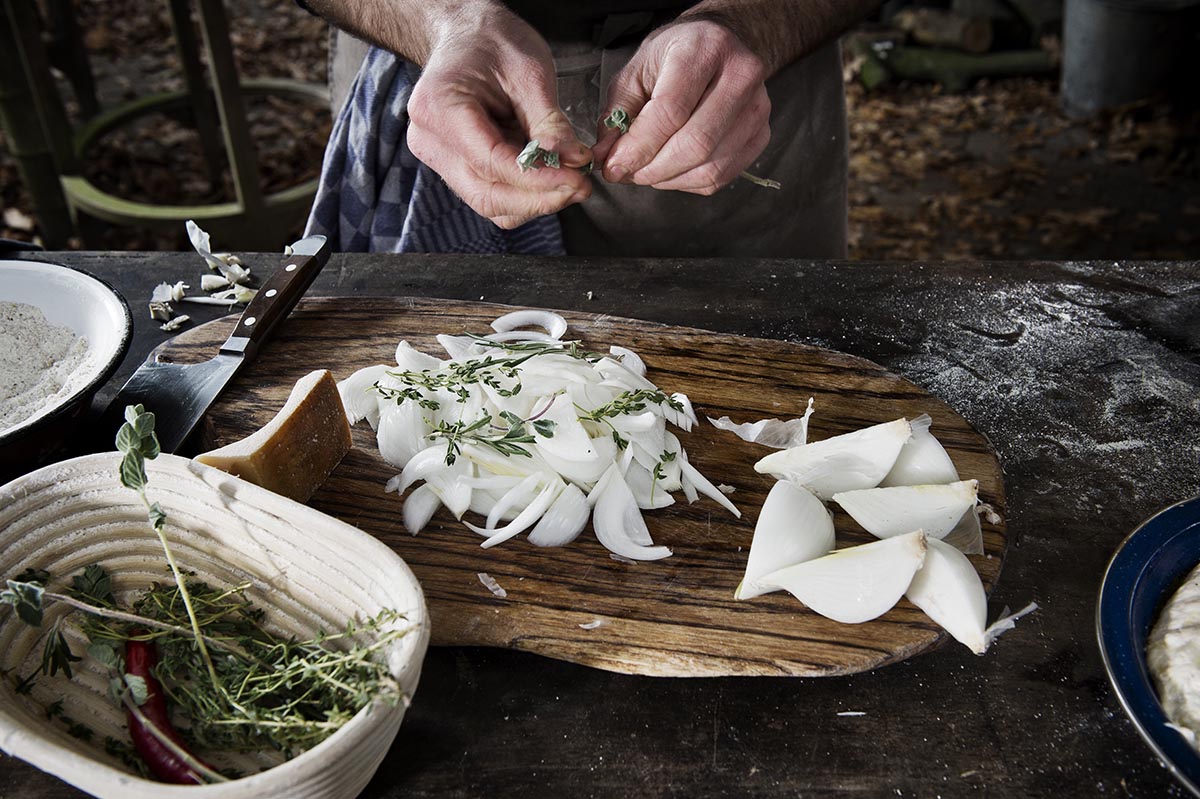 Efraïm Bolado van der Meij, bakker van restaurant As in Amsterdam, kwam voor de nieuwe Seasons naar de buitenkeuken van vuurspecialist Willem ter Steeg, ook wel Grijzebeer genoemd, om daar te bakken op een houtvuur. De taakverdeling was helder: Grijzebeer beheerste het vuur, maar wat er ín de pannen ging, was aan Efraïm. Wil jij zijn focaccia brood met uiencompote thuis proberen? Trek er op een donkere winterdag dan een middag voor uit. Zeker moeite waard, want het resultaat is heerlijk.
