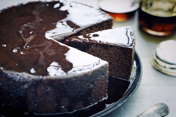 9. Laat iets afkoelen en giet vlak voor het serveren over de cake.