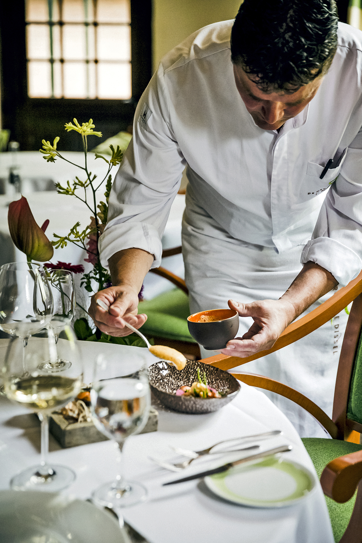 Hij goochelt met smaken en fietst zijn neus achterna voor inspiratie. Stille kracht Tonny Berentsen kookt als chef-kok van De Kromme DisselĀ in hetĀ Gelderse Heelsum alĀ zestienĀ jaar een Michelinster bij elkaar. Met dit speciale Seasons-arrangement kun jij van zijn kookkunsten genieten en daarna heerlijk overnachten in het nabij gelegenĀ Hotel Klein Zwitserland! Gewoon, eenvoudig en eerlijk; het typeert de bescheiden Berentsen die vorige winter wederom een Michelin-ster binnensleepte.Ā De vijftiende alweer in vijftien jaar als chef-kok van De Kromme Dissel. Daarmee bezorgde hij het restaurant en passant de 45steĀ opeenvolgende ster, een unicum in de vaderlandse restauranttraditie. Slechts ƩƩn andere eetgelegenheidĀ in de wereld kan bogen op een dergelijk sterk staaltje continuĆÆteit. De grote baas van Michelin reisde er speciaal voor naar Nederland om Berentsen in het zonnetje te zetten. ā€œHij noemde ons ā€˜een icoon van de Nederlandse gastronomie’. Ja, dat doet je toch wat.ā€ De lat ligt hoog, elke dag, bij elk gerecht. Adel verplicht, zou je haast willen zeggen. ā€œHet is wel een dingetje, die ster. Als we hem kwijtraken, ga ik de geschiedenisboeken in als degene die de ster van het langstlopende sterrenrestaurant verkwanseld heeft. Dat is niet leuk. Aan de andere kant: de ster is van Guide Michelin, niet van ons. Ze plakken hem aan onze gevel, maar hij blijft van hun. Ik zie het als topsport, zo’n sterrenrestaurant. Je kunt winnen en verliezen. We hebben hem wel al 45 jaar, ik weet niet beter. Het zou mooi zijn om de halve eeuw te halen. Tegelijkertijd zeg ik: het draait niet om de ster, maar om de gast. Die moet hier met een blijvendeĀ herinnering de deur uitwandelen. Dan ben ik tevreden. Voor mij is de inspecteur van Michelin een tevreden gast die regelmatig terugkeert.ā€