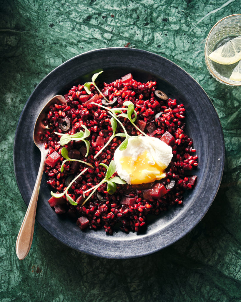 Je hebt risotto en je hebt gort. Én dus gortrisotto. Wij smullen van deze gortrisotto met rode biet, uit het pas verschenen kookboek ‘Vega Arabisch’, van Mounir Toub, oftewel Chef Toub.