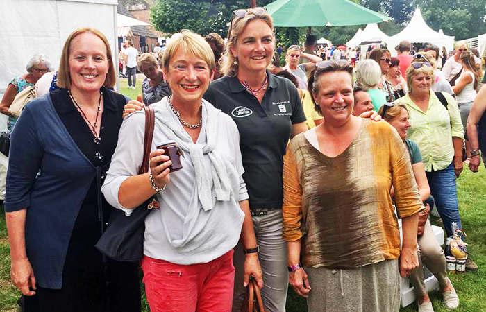 Juryleden Dosia Brewer (links), barones Nathalie van Verschuer (2e rechts) en Fanny Glazenburg (rechts) feliciteren de terechte winnares Irena Fraczak.