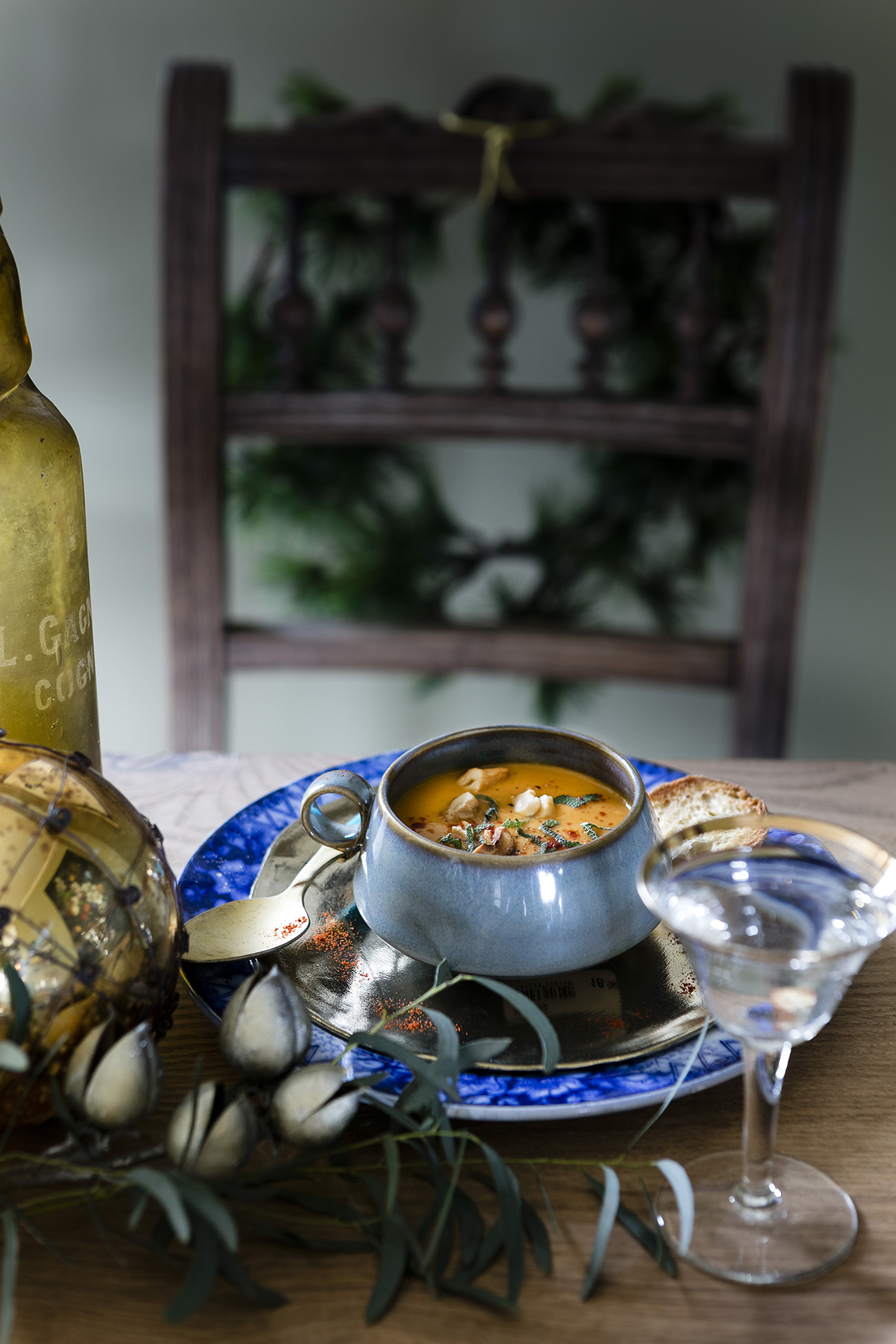 Voorgerecht voor 4 personen Bereidingstijd ± 10 min. + oventijd ± 30 min. Tip: Deze soep kan heel goed 1 à 2 dagen van tevoren gemaakt worden en vlak voor het serveren worden opgewarmd. Ingrediënten: