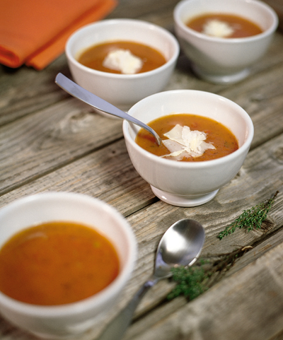 Wie jarig is, trakteert. En wat is nu mooier dan dat te doen in de vorm van tijd, aandacht en kennis. Daarom helpen wij de Rotaryclub Soestdijk met een mooi initiatief, gericht op het goede doel, Blue Ribbon in dit geval. Als voorbereiding was ik er getuige van hoe twintig vrijwillige kookliefhebbers, mannen en vrouwen, in de weer waren met hun zelfgemaakte voorjaarsgerechten van recepten uit Seasons. We proefden, keurden, bespraken, want straks koken zij en vele vrijwillige keukenhulpen het diner voor Seasons ‘Fietsen met Smaak’, dat 3 juni in de prachtige omgeving van Soest plaats gaat vinden. Een regelrechte uitdaging. Samen met Rotaryclub Soestdijk veranderen we die dag het erf van de Birkhoeve in een opstartplaats voor vele fietsers en later in de middag in een uniek buitenrestaurant. Als voorproefje geven we deze heerlijke tomatensoep – mijn favoriet – prijs, die fijnproever Frits Claasen nog extra smakelijk wist te maken met een druppeltje gembersiroop. Ons verlanglijstje? U geeft zich natuurlijk op voor dit unieke evenement: klik hier. Hier leest u meer over Fietsen met Smaak. Koude tomatensoep met basilicum en Parmezaanse kaas Ingrediënten voor 4 personen – 1 eetlepel olie – 1 grote ui, fijngehakt – 1 teentje knoflook, geperst – 15 gram bloem – 1 kilo rijpe tomaten – tabasco – 2 1/2 deciliter droge witte wijn – 1 eetlepel tomatenpuree – 3 eetlepels fijngehakte basilicum – zout en peper – voor de garnering: flintertjes Parmezaanse kaas – gembersiroop Bereiding Verhit de olie in een grote pan en fruit hierin de ui en de knoflook ongeveer 5 minuten. Roer de bloem erdoor en laat al roerend 2 minuten sudderen. Snijd de tomaten in grove stukken en doe ze bij de ui en knoflook. Laat het geheel, onder af en toe roeren, 20 minuten zachtjes pruttelen. Voeg de tabasco, wijn en de tomatenpuree toe en naar smaak zout en peper. Doe de deksel op de pan en laat alles nog een half uurtje zachtjes doorkoken. Laat iets afkoelen en zeef of pureer de soep. Laat de soep afkoelen en vervolgens in de koelkast goed koud worden. Voeg vlak voor het serveren de basilicum toe en garneer met Parmezaanse kaas. Tip van fijnproever Frits Claasen: maak de tomatensoep extra smakelijk met een druppeltje gembersiroop.