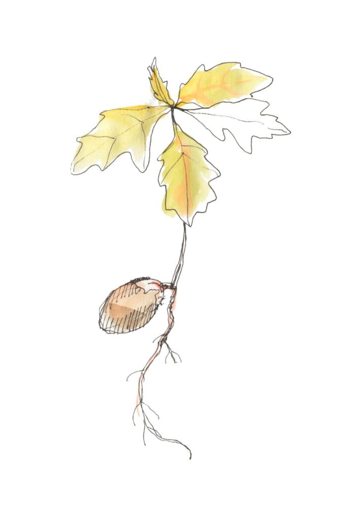 De gaaien vergeten de plekken waar ze hun buit verstopt hebben of vinden het gemakkelijker om van pinda’s en vetbollen te smikkelen die wij aanbieden. De eikels die de gaai heeft verstopt en niet eet, ontkiemen en vormen het begin van een nieuwe generatie eiken.