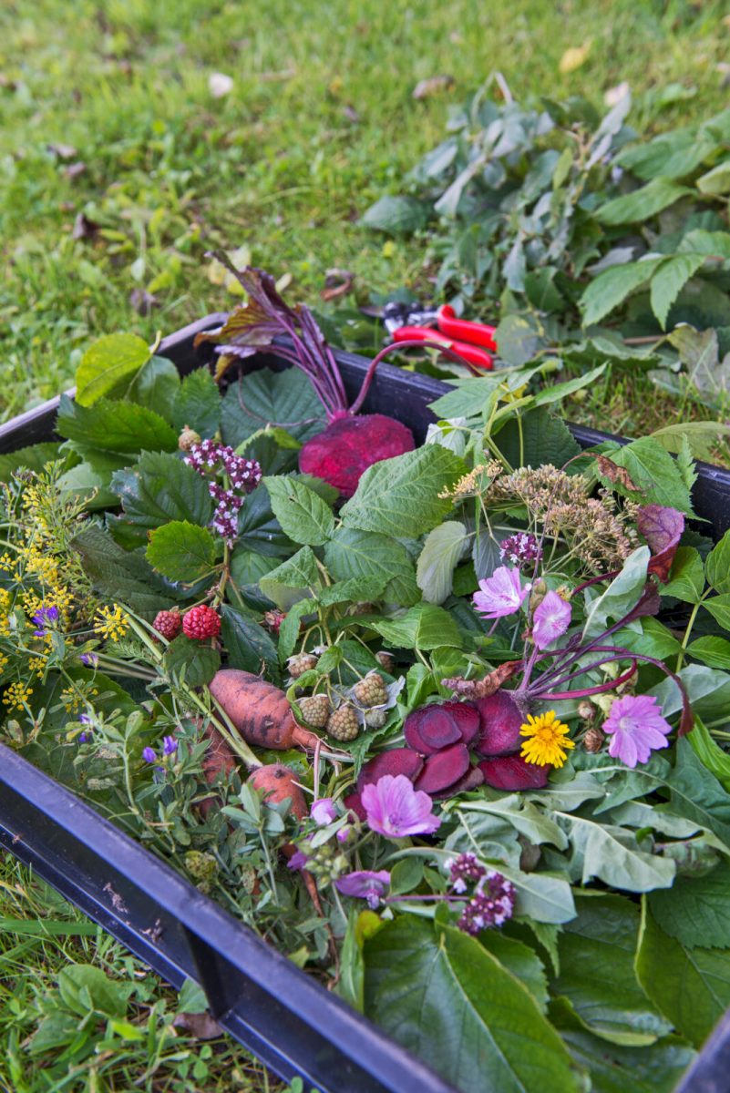 Een salade voor je paard, met groenten, bloemen en bladeren