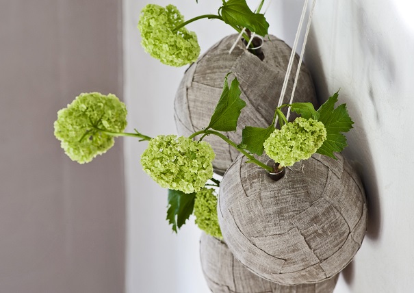 - Knip of snijd vervolgens een opening in de bol voor het buisje, waarin de sneeuwbol (Viburnum) kan worden gestoken.