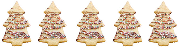 - Druk er met een kerstboomvormpje boompjes uit en neem de rest van het deeg weg (2).