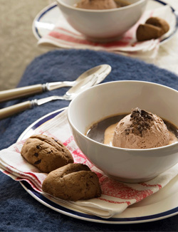 Klop met een elektrische mixer de boter met de beide suikers romig. Voeg al kloppend het ei toe. Doe er de bloem, het espressopoeder, het cacaopoeder, het zout en de chocolade bij en meng tot een egaal deeg. Vorm een bol van het deeg en duw het plat. Doe het deeg in een plastic zak en laat het in de koelkast circa 1 uur rusten. Verwarm de oven voor op 180˚ C. Rol het deeg uit op een bebloemd oppervlak en snijd er met een mesje de vorm van een koffieboontje uit. Kerf in het midden een sneetje. Geef er affogato bij.