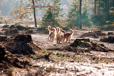 ‘Lekker door het bos struinen, dat willen wij!’ Die boodschap van deze uitbundige staarten is duidelijk. En geef de vier vrolijke Leonbergers eens ongelijk. September met zijn gouden zon vraagt om een stevige boswandeling. En mocht u dit viertal toevallig tegenkomen, wees gerust: een knuffeliger type hond is zelden gesignaleerd. Wel houden ze erg van water, waarin ze het liefst kopje onder gaan. En van gezelligheid, dus de kans bestaat dat u grote modderpoten oploopt… Meer informatie over dit hondenras: www.leonberger.nl