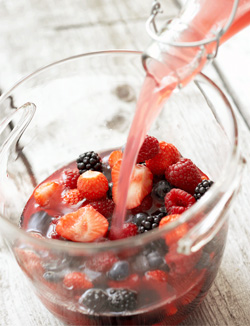 Deze siroop is ook heerlijk in een bowl van rood fruit. Schep in een glazen bowlschaal 500 gram rood fruit (aardbeien, frambozen, blauwe bessen en bramen) door elkaar. Schenk er een flinke scheut granaatappel-frambozensiroop over en vul aan met mousserende witte wijn. Granaatappel-frambozensiroop Voor 1 fles van ca. 1 liter