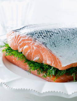 Traditie: Grav is Zweeds en Noors voor ‘gat in de grond’ en lax betekent ‘zalm’. Gravad lax betekent dus letterlijk ‘in de grond begraven zalm’. In de middeleeuwen werd gravad lax gemaakt om de vis langer goed te houden. De zalm werd gezouten en vervolgens in zand begraven. Erop kwamen nog een paar flinke stenen om het vocht uit de vis te krijgen. Zo bleef de zalm langer houdbaar. Tegenwoordig wordt gravad lax niet meer in de grond gestopt maar een paar dagen gemarineerd. Begin daarom 2 dagen van tevoren met dit recept. Ingrediënten:
