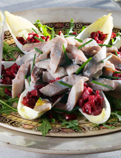 Gemarineerde haring met tartaar van bietjes Voorgerecht voor 4-6 personen Ingrediënten:
