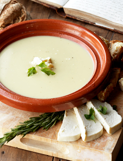 Stevig voorgerecht of lunchgerecht voor 4 personen De combinatie van de pittige geitenkaas en de zachte Hollandse witte geeft deze romige soep zijn bijzondere smaak. Ingrediënten: