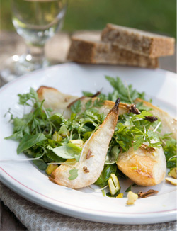 Kruidensalade met geroosterde peer Lunch- of voorgerecht voor 4 personen