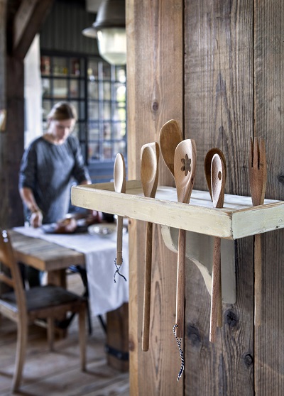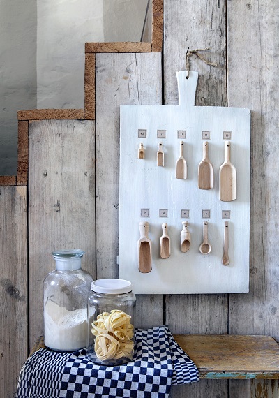 Heb je een plekje aan de muur over? Dan is deze lepelplank een efficiënte manier om veel pollepels en spatels op te bergen. Overzichtelijk: je pakt zo altijd de goede lepel of spatel. Wat heb je nodig *plankje of houten console *boormachine en houtboortje (doorsnee 1,5 cm) Hoe maak je het