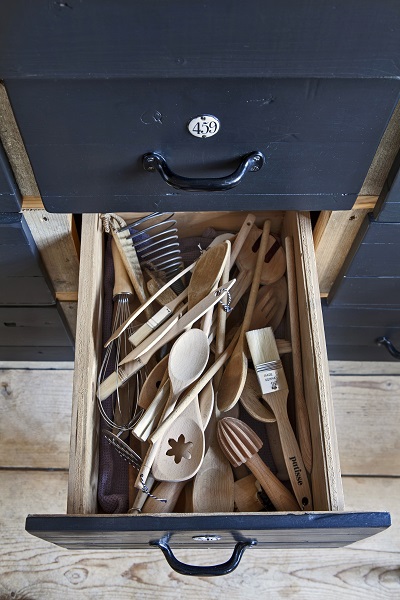 Elke keuken heeft wel zo’n lade: eentje waarin allerlei keukengerei door elkaar ligt. Snel erin gegooid na de afwas maar zo onhandig tijdens het koken, als je snel een pollepel of spatel nodig hebt. Daarom zes creatieve oplossingen om nooit meer te hoeven graaien in die rommelige bestekbak.
