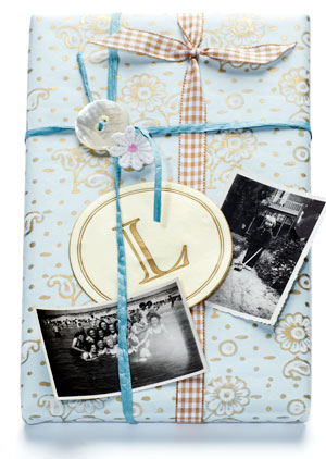 - Versier het pakje verder met bijvoorbeeld oude familiefoto’s.