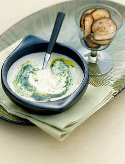 Rammenassoep met rammenas-chips Voorgerecht of lunchgerecht voor 4 personen