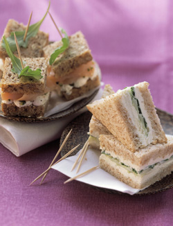 • zout, peper van de molenVerwijder eventueel de harde stelen van de rucola en snijd in grove stukken. Schil de komkommer en snijd in dunne plakken. Roer de kwark en mierikswortel door elkaar en breng op smaak met zout en peper. Rooster het brood. Besmeer 2 sneden met kwark, en verdeel hierop de komkommer en de rucola. Bedek met de andere sneden brood, druk een beetje aan en snijd diagonaal door.
