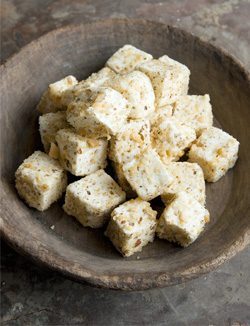 Bekleed een bakblik van 27×17 cm met een opstaande rand van minimaal 3 cm met bakpapier en bestrooi het papier gelijkmatig met een derde deel van een mengsel van de walnoten, kristalsuiker en kaneel. Week de gelatine in koud water. Doe de 375 gram suiker met het water in een steelpan, roer 1 keer en kook het geheel tot de suiker is opgelost. Voeg de keukenstroop toe en kook het mengsel verder tot het 124 ˚C is. Begin 3 minuten voordat deze temperatuur is bereikt de eiwitten tot schuim te kloppen. Schenk al kloppend de hete suikersiroop in een dunne straal op het stevige eiwitschuim. Voeg de uitgeknepen gelatineblaadjes toe aan de hete massa en blijf kloppen tot de massa nog lauw aanvoelt. Schenk de massa in het voorbereide bakblik; deze vloeit langzaam uit tot de bovenkant vlak is. Bestrooi het mengsel met de helft van het overgebleven notenmengsel en laat het minstens 2 uur afkoelen (eventueel in de koelkast). Keer de plak na het afkoelen op een snijplank en verwijder het bakpapier. Doop een scherp mes in heet water. Snijd de plak in repen en knip de repen in stukken met een schaar. Wentel de stukken in het laatste deel van het notenmengsel.