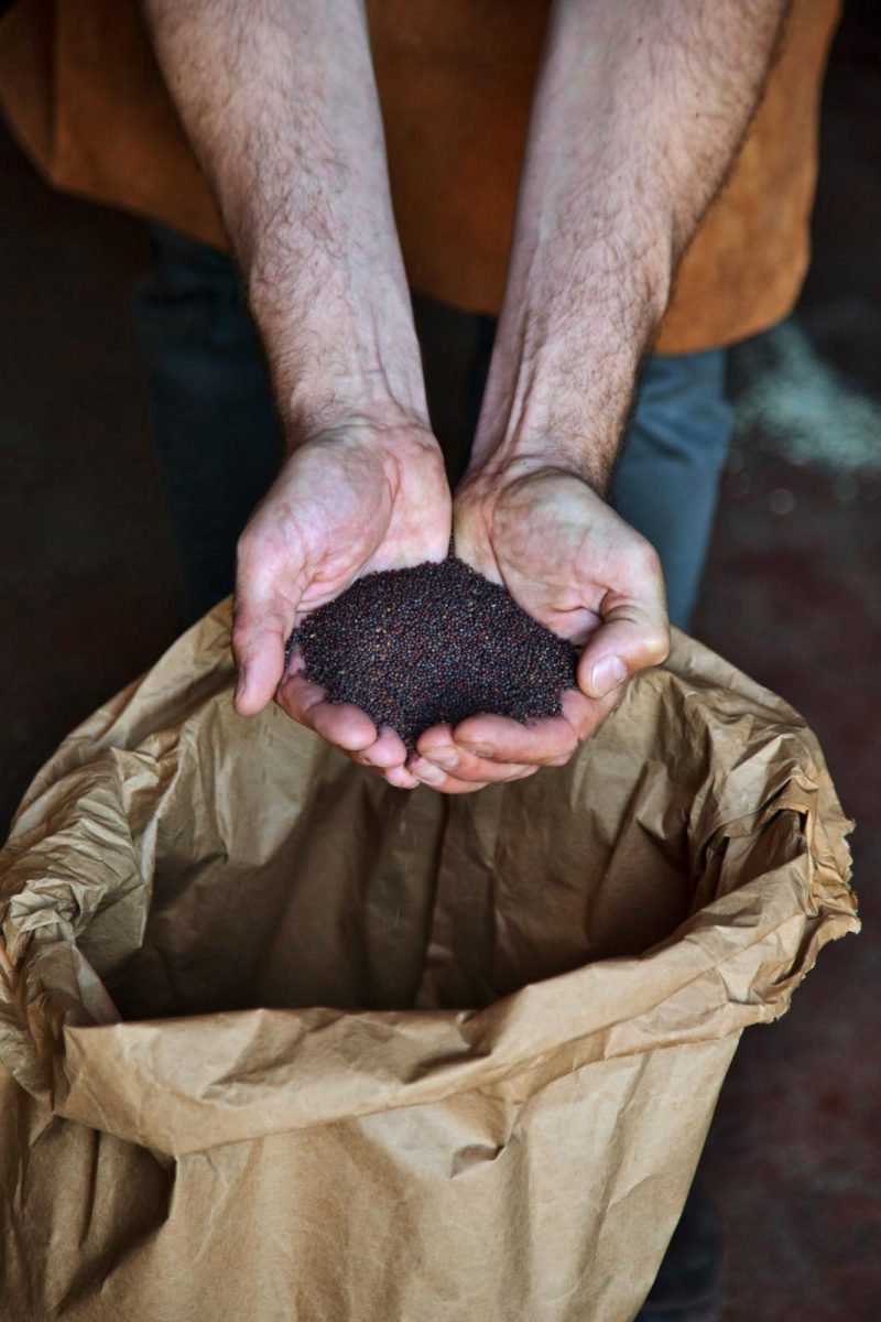 Mosterdmaker Sten Sipkes laat vol trots het zwarte mosterdzaad zien