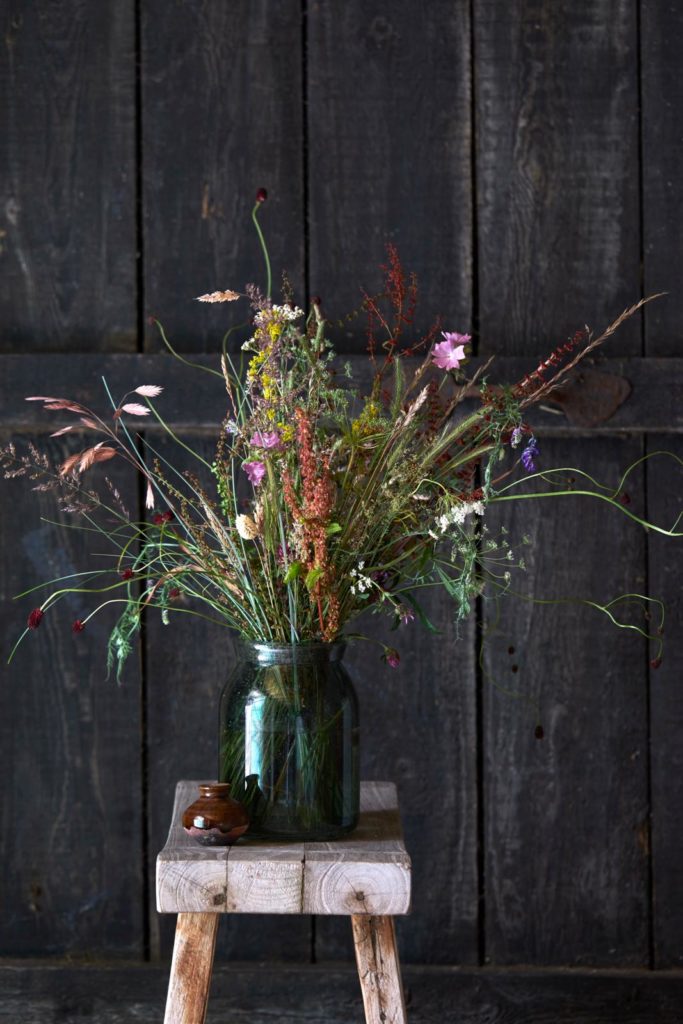 Gevonden in de berm: diverse bloeiende grassen, zoals wilde peen (lees ook: 5 weetjes over wilde peen), kaasjeskruid, zuring, wikke en een takje pimpernel uit de tuin.