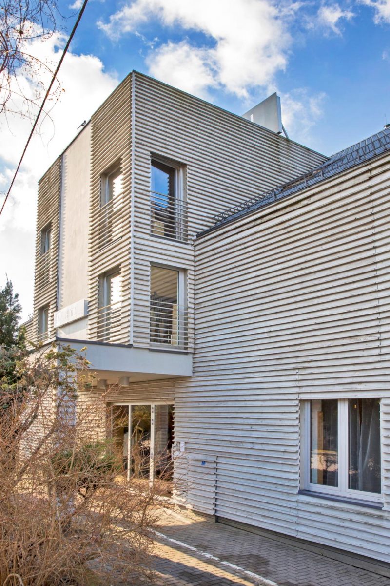 Hotel Galery69 staat in Dorotowo, vlak onder Olsztyn, de historische hoofdstad van de regio. Dorotowo is een klein lintdorp met lage huizen met diepe tuinen. De ingang van het hotel is aan de straatkant. Eenmaal binnen trekt het panoramische zicht op het meer alle aandacht. De kamers, het restaurant, het enorme terras en de spa: ze kijken allemaal uit op het water. Ooit stond hier de dorpsschool die later werd verbouwd tot eenvoudig gasthuis voor zomergasten. MaƂgosia kent het nog uit haar jeugd. Ze kwam met haar familie elke zomer naar deze streek. Haar vader was architect en bouwde de eerste traditionele houten datsja van MazuriĂ« aan een meertje vlakbij. Die datsja is nog altijd familiebezit. “Aan dat meer hebben Wojtek en ik elkaar leren kennen. Hij bouwde op zijn 19e een datsja voor zijn familie. Op een dag meerde hij zijn bootje vlak bij onze datsja aan. Hij zeilde letterlijk mijn leven binnen.” Ze raakten aan de praat en zijn inmiddels al meer dan dertig jaar samen. MaƂgosia: “Hij en ik hebben dezelfde ziel, we zijn dol op de natuur en houden van pure, duurzame ontwerpen die tijdloos blijven. Onze smaak is gevormd in onze kinderjaren waarin de natuur en het buitenzijn de belangrijkste elementen waren. Ons eerste huis hebben we samen gebouwd, inclusief de meubels en de keuken. We konden in de winkels niets vinden naar onze smaak, dus waarom niet iets maken wat we wel mooi vinden? Mijn vader deed dat ook, hij bedacht niet alleen huizen maar ook de meubels die daarin pasten.”