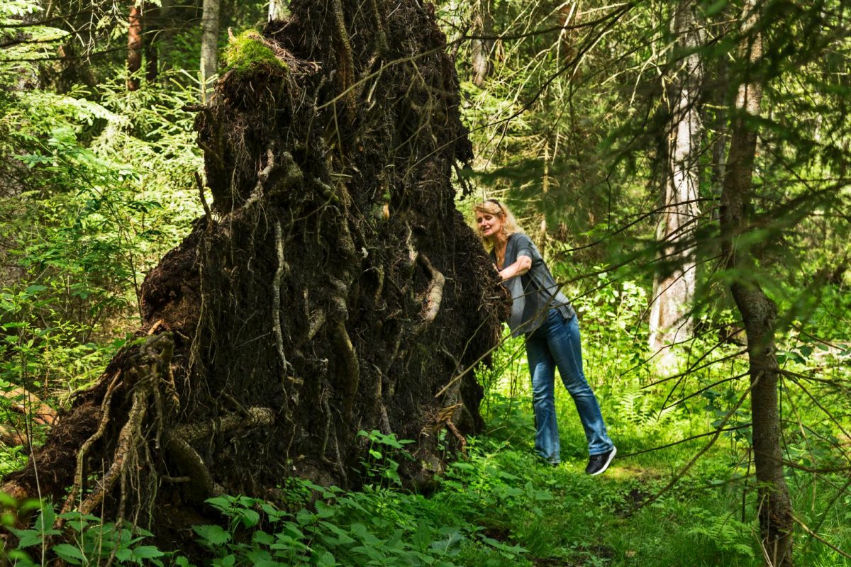 Nieuwsgierig stappen we door de poort. Joao laat ons voorgaan over het slingerende, houten pad. Hij wacht met praten tot hij onze verrukte kreten hoort en weet dat de betovering heeft toegeslagen. āJe moet hier zijn geweest om te beseffen hoe bijzonder dit bos is. Dat er wisenten en lynxen leven is natuurlijk geweldig, maar is voor mij niet het belangrijkste. Dit bos is een voorbeeld van de totale balans van de natuur die eeuwenlang ongestoord haar gang kon gaan. Er is geen sprake van monocultuur of sterke overheersing van een bepaalde soort. Het is hier zo puur en gezond dat een wilg kan uitgroeien tot een boom van dertig meter hoogte. Er staat hier een winterlinde van driehonderd jaar en 46 meter hoog. De bomen stoppen hier hun kracht niet in de breedte maar in de hoogte. Door de weelderige vegetatie is er immers meer concurrentie. Ze strijden met elkaar om het licht, daarom zijn de kruinen relatief klein en zijn er zo veel vreemd gevormde bomen. Ze buigen zich letterlijk in bochten om maar zo veel mogelijk licht te vangen. Sommige zijn zelfs in elkaar verstrengeld geraakt en met elkaar vergroeid. Hoe vaak ik hier ook kom, ik zie elke keer weer iets nieuws. Gisteren heeft het gestormd en konden we het bos niet in vanwege gevaar voor vallende takken. Tot nu toe zie ik nog geenĀ gesneuvelde bomen of grote gevallen takken. Niet dat het uitmaakt, want bomen die vallen, zorgen voor open plekken en dus nieuw leven.ā