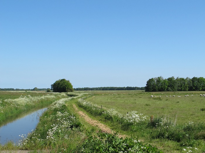 We passeren velden met wuivend graan en dan weer rijen met aardappels. Het is duidelijk akkerbouw wat hier de klok slaat. Hier en daar grote boerderijen met schuren voor opslag. We lopen over paden van geschoren gras en smalle geasfalteerde wegen naar het wierdedorp Eenrum. Daar treffen we een verleiding aan die niet is te weerstaan: kwekerij ‘De kleine Plantage’. Wat een rijkdom aan planten! Iets meenemen gaat nu niet, maar later terugkomen vast en zeker wel. Eenrum zelf is een lief, oud dorp, met een kleine kerk uit de dertiende eeuw en een heel fijne pleisterplaats: Abrahams mosterdmakerij, naast korenmolen De Lelie. Wat kun je hier beter bestellen dan mosterdsoep met prei en spekjes? Na dit intermezzo lopen we fluitend door naar Mensigeweer, waarna we koers zetten langs de vaart richting Maarhuizen. Vandaar is het nog maar een kleine 2 km naar Winsum, waar een grote beloning op ons wacht. In Herberg De Gouden Karper, de oudste herberg in Nederland genieten we van een geweldige visproeverij, eigengemaakte frietjes en biologisch ijs met aardbeien als dessert.