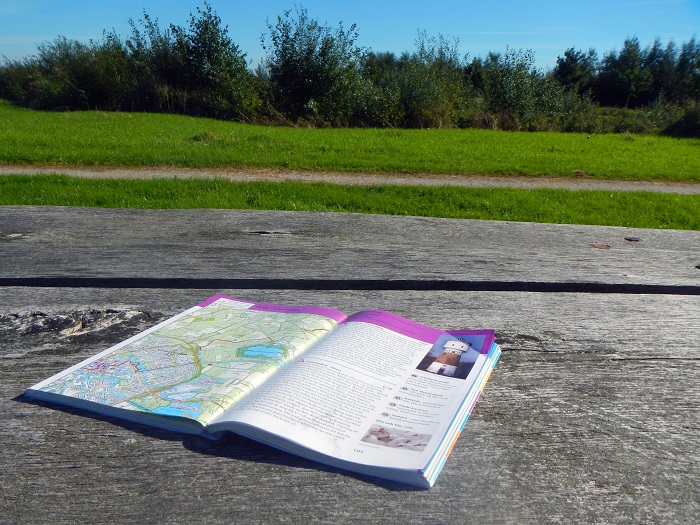 Als in de verte vakantiepark De Huttenheugte opdoemt, gaan we net op tijd linksaf een lief schelpenweggetje op. Hier nodigt een picknicktafel ons uit voor het nuttigen van ons meegenomen proviand. Blijkbaar stralen we rust uit, want ook een vlinder strijkt bij ons neer. In dit weidevogelgebied – het dal van het Drostendiep – kunnen vogelaars hun hart ophalen. Met een beetje geluk vliegt er een schoolekster, wilde gans, zwaan, grutto of tureluur voorbij. Inmiddels is het niet ver meer naar Sleen, een dorpje dat ligt op een plek die al 4500 (!) jaar wordt bewoond. Via de kronkelige hoofdweg bereiken we het ‘centrum’ én het eindpunt. Daar bestellen we op het terras van Lunchroom ’t Veurhuus een goed glas wijn en een sandwich met lokale ingrediënten. Een mooi einde van onze wandeling, hier komen we graag nog een keer terug!