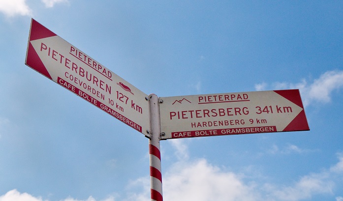 Een Pieterpad-wandelaar is de volwassen versie van een rugzaktoerist. Net als backpackers in verre oorden stellen wandelaars elkaar hier min of meer dezelfde vragen. Loop je het Pieterpad? Waar ben je vandaag gestart? Hoe ver ga je nog? En zo verder. Al zuchten we wel eens tegen elkaar over warmte of pijnlijke voeten, over het algemeen houden we allemaal van hetzelfde: die fijne, trage wegen door de provincie, over zand- en graspaden die voor het betere onthaastgevoel zorgen. Zeker als er op zo’n graspad net gemaaid is en de geur van vers gras omhoog kringelt. Ook op deze route bewandel ik zo’n zijdezacht pad, lopend vanaf het vestingstadje Coevorden – met het mooie kasteel – door het rivierdal van de getemde Vecht. De eerstvolgende pleisterplaats is in Gramsbergen, een hofstadje met lieflijke straatjes en een fijn plein met meibomen. Hier is alles voorhanden wat een wandelaar wenst: een informatiepunt met zeer behulpzame vrijwilligers en de gastvrije Stadsherberg De Olde Woage, in een sfeervol pandje uit 1777. Gele kwikstaart