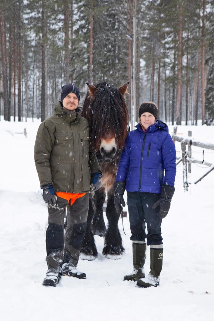 Jonas en Elin Nordlund met tussen hen in hengst Tittut.