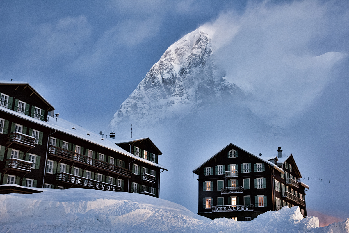 Hoewel het hotel omgeven is door skipistes is het beslist geen plek voor een stevige après-ski. Met zijn geïsoleerde ligging mikt het op rust. Het is een uitgelezen omgeving om te genieten van het grandioze landschap, van de zuivere berglucht en van de onwezenlijke eenzaamheid. Enkel ’s middags is het er druk. Bij zonnig weer wordt er gedrongen om een plekje op het terras. Als de avond valt en de skiërs en dagjesmensen zijn afgedaald keert de rust terug en ademt het hotel de sfeer uit van weleer. Terwijl de nacht valt en de contouren van de Eiger zich in het maanlicht aftekenen tegen het nachtblauw van de hemel, nestel ik me in een clubzetel in de bar met een Schotse single malt achter een spelletje schaak, begeleid door zachte jazz. “Hello Mister Bond! How was your day?” Lees het hele artikel in Seasons 1-2017. Seasons-aanbieding Hotel Bellevue des Alpes Met de kortingscode ‘eigerseasons’ krijgen Seasons-lezers die voor 21 januari boeken 10% korting op hun boeking tot april 2017. Hotel Bellevue des Alpes werd in 2011 bekroond als best bewaarde historische hotel van Zwitserland. Eigenaren Andreas en Silvia von Almen waken over de sereniteit en de rust. Wifi wordt er beperkt tot enkele uren per dag. Het hotel bezit 56 kamers, verdeeld over de twee gebouwen, verbonden met een gaanderij. De kamers hebben geen televisie maar wel een grandioos bergzicht. Boeken kan via de website van het hotel.