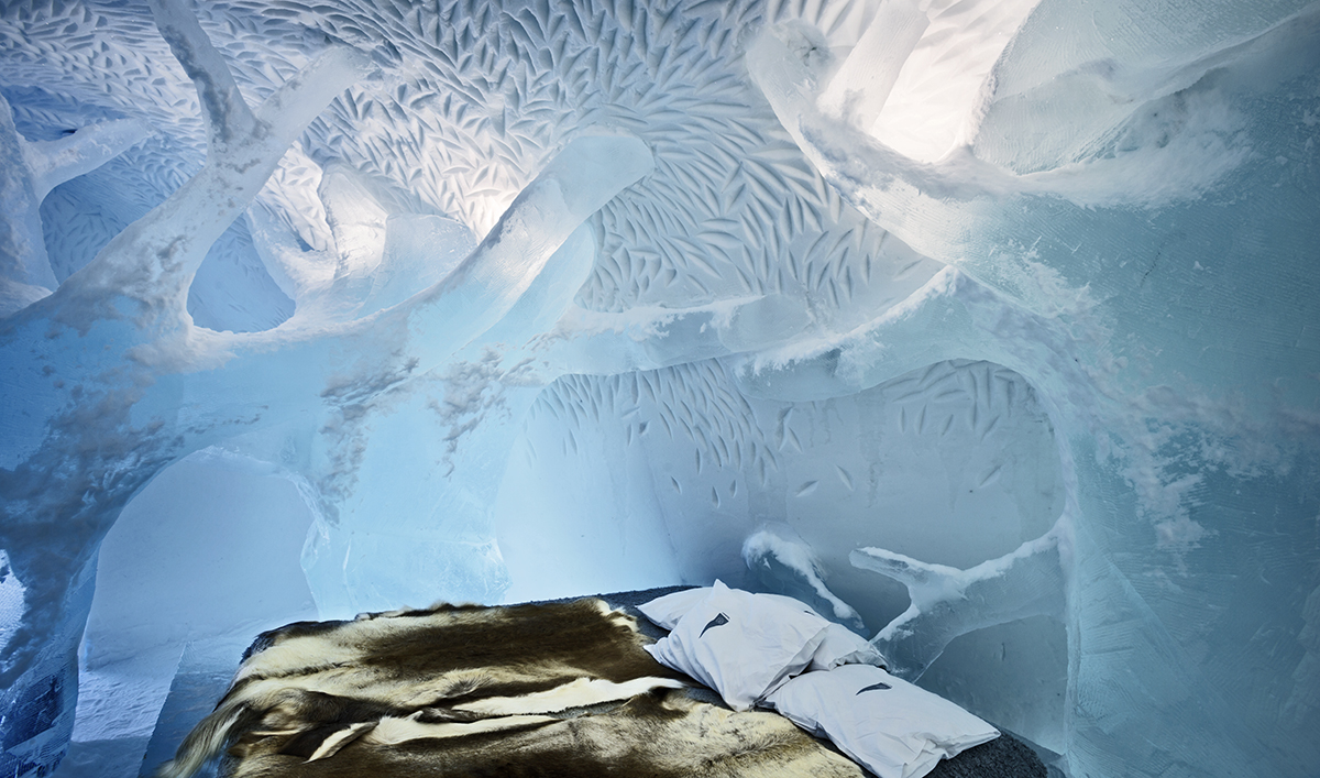Het is een uniek logeeradres dat elk jaar opnieuw wordt opgebouwd: het Icehotel in Zweeds Lapland. Afgelopen winter creëerden de Nederlandse Marjolein Vonk en de Italiaanse Maurizio Perron er een luxe ijssuite, die in de lente, samen met de rest van het hotel, weer terug smolt tot rivierwater. Gelukkig voor ons legden ze hun ijzige ontwerp vast.