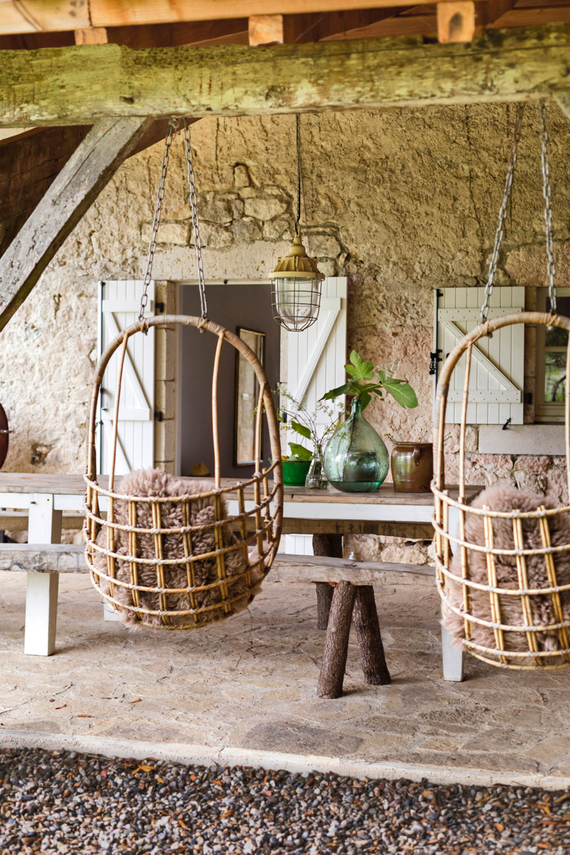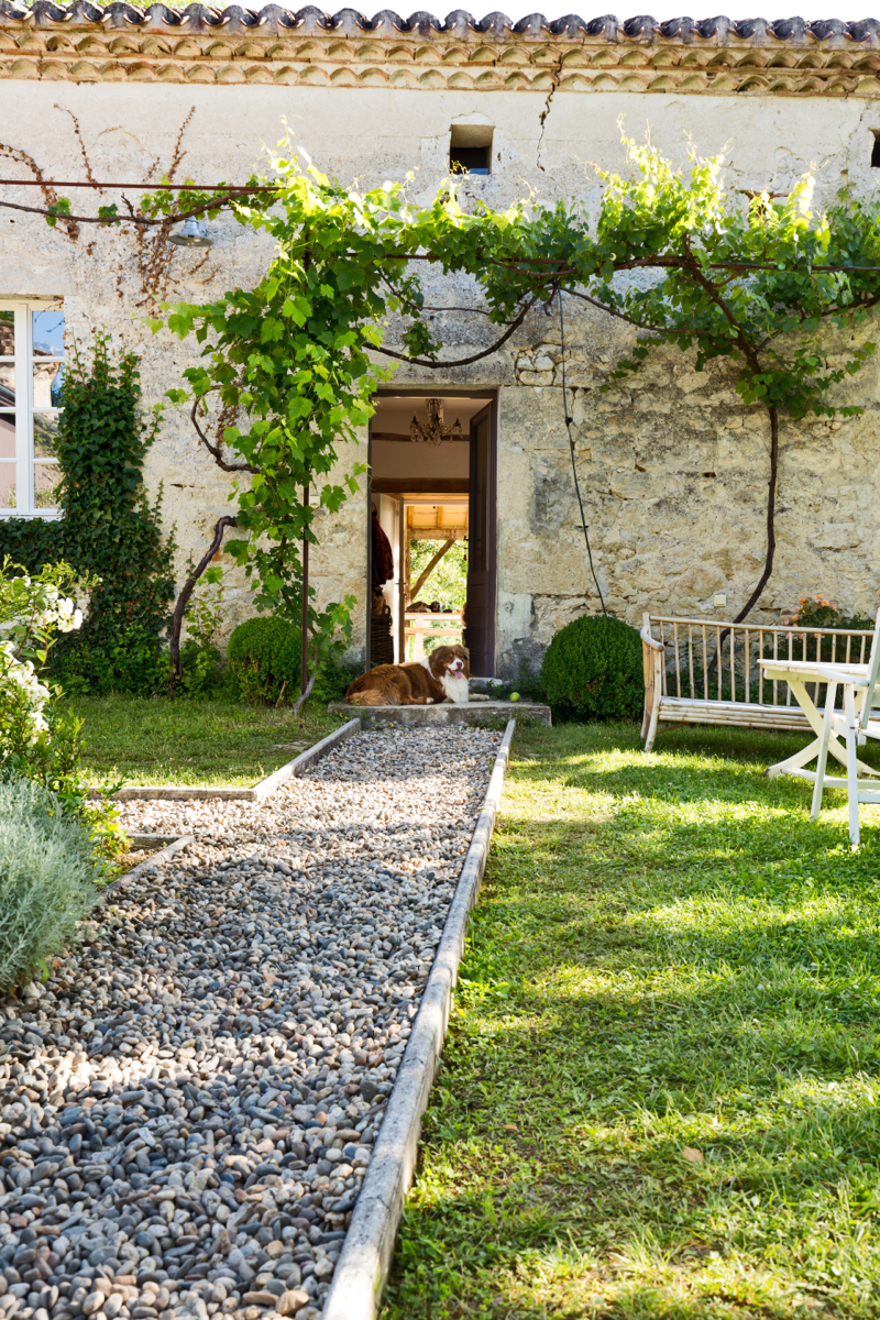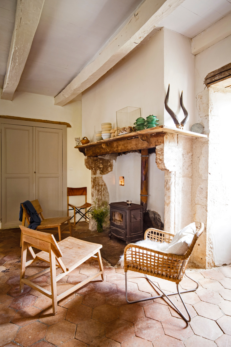 Stap voor stap is le Piquet samen met een architect en een lokaal bouwteam verbouwd tot een licht en ruimtelijk vakantiehuis. Los van hier en daar een noodzakelijke vernieuwing bleef de oude ziel onaangetast. “We vonden het belangrijk dat de sfeer bewaard bleef. Zo hebben we bewust de oude indeling gerespecteerd. Het huis had bijvoorbeeld een lange gang in het midden, daar houd ik heel erg van.” De keuken in het hoofdhuis is een echte ontmoetingsplek. In de winter schaart de familie zich rond het vuur onder de hoge zandstenen schouw met wijn en mooie verhalen.