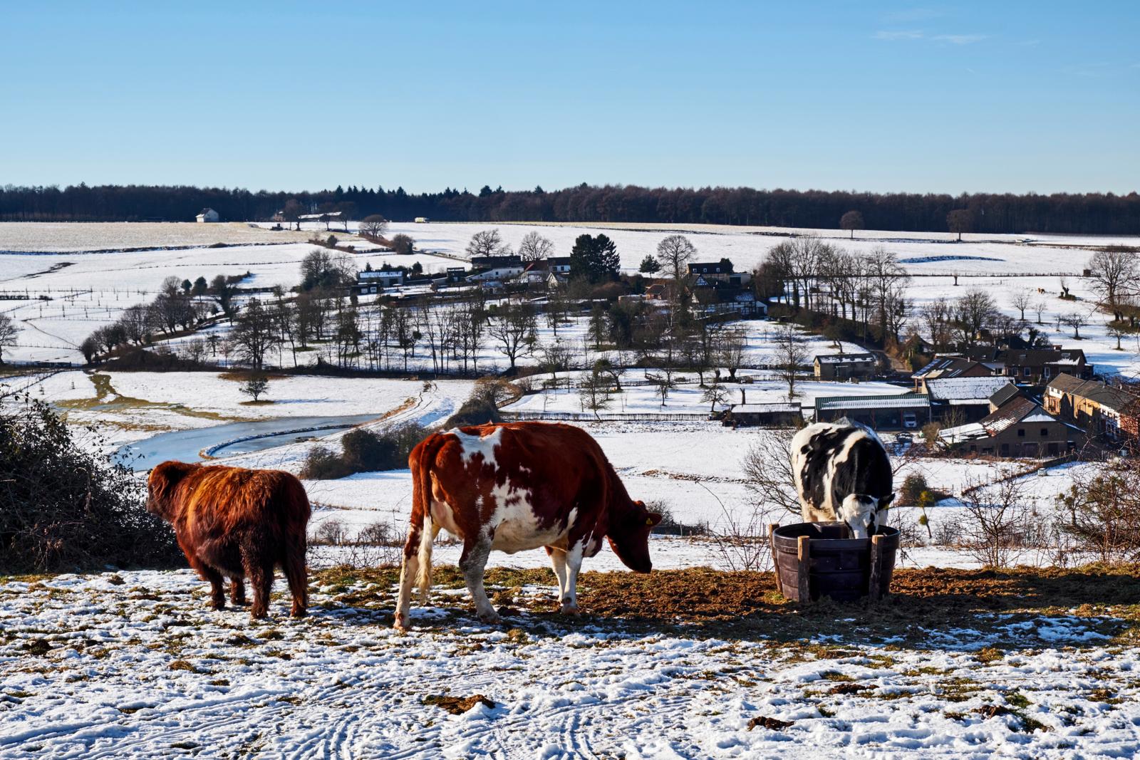 Weggetjes worden smaller en holler, hellingen steiler, bomen staan dichter opeen, asfalt gaat over in zand. Hoe dieper je Zuid-Limburg ingaat, hoe landelijker het wordt. Het Vijlenerbos strekt zich uit tot over de Duitse en Belgische grens. Je vindt er nog veel oude grensbomen en grensstenen. Ook oud: de vuursteen in de bodem. Trek goede schoenen aan, want er steken soms scherpe punten uit de paden. De holle wegen tussen de heuvels ontstonden door de afvoer van smelt- water in de ijstijd. Omdat ze het regenwater afvoeren, heerst er een vochtig microklimaat. De steile bermen zijn kleine natuurparadijsjes met wilg, es en wilde kers. Winterwandelen in het zuidelijkste zuiden van Limburg heeft zo z’n voordelen, want hier valt vrijwel altijd de eerste én de meeste sneeuw van Nederland. Sneeuw dempt geluid. En ligt er sneeuw in het Vijlenerbos dan wordt het er dubbel zo stil omdat de eikenhouten slagbomen aan begin en eind van de drukke Epenerbaan dan dichtgaan. De gemeente strooit hier niet, omdat zout de plantengroei in de bermen ernstig zou verstoren. ’t Hijgend Hert