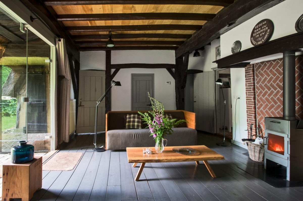 Houten luiken met hartjes erin maken de idylle compleet. Ook de locatie, verscholen in de bossen rond Hellendoorn, draagt daar aan bij. Behalve een van de oudst bewaard gebleven boerenhuisjes in deze regio is Oud Vels ook een van de meest authentieke logeeradressen in het aanbod van Buitenleven Vakanties. De lage achtergevel met zogenoemde ‘onderschoer’ is typerend voor de Twentse bouwstijl. Via deze dub- bele openslaande deuren reed de boer zo met paard-en-wagen naar binnen.