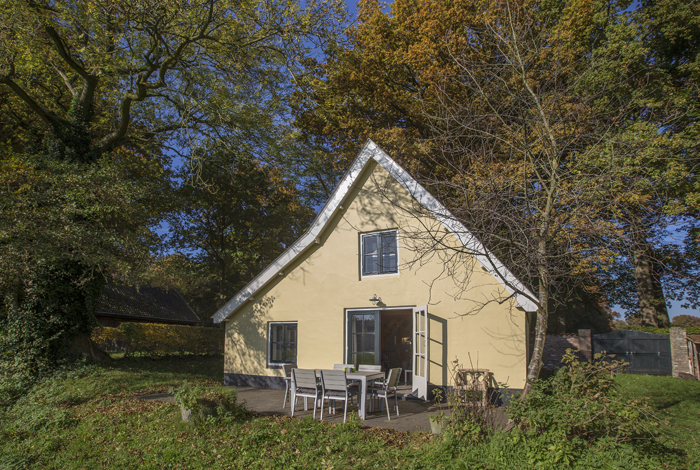 Over een oprijlaan met aan weerszijden imposante beuken rijden we naar ons logeeradres, een schilderachtig, zandkleurig huisje aan de rand van landgoed Moersbergen. Aan het eind van de laan draaien we een half verhard pad op, langs een oude tuinmuur en een compacte beukenhaag, die het huis gedeeltelijk omsluiten. Het geknikte dak, de ramen met roedeverdeling en de grote acacia’s, beuken en essen geven het gevoel in een sprookje te zijn beland. Een vloer van kiezels Eenmaal binnen is het vele hout het eerste dat opvalt: kamerhoge robuuste balken en een volledig houten plafond. Dan valt ons oog op de kiezelstenen vloer, die zich als een soort natuurlijk vloerkleed uitstrekt richting houtkachel. Maar daarna wordt onze blik weer naar buiten getrokken: over de eettafel, door openslaande tuindeuren naar het weiland. Het is verleidelijk om nu neer te ploffen in een van de kuipstoeltjes, die houtkachel aan te steken en alle activiteit verder over te laten aan de eekhoorns en boommarters die buiten spelen… Maar de buitenlucht roept toch net iets harder. Eerst even onze bagage opruimen: de slaapkamers – er zijn er drie – bevinden zich boven, vlak onder het schuine dak. Gezellig! Vanuit de voortuin – de vroegere kasteeltuin – lopen we zo het bos in.