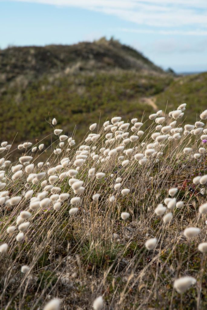 Tegen de avond volg ik vanuit het minuscule dorpje Biville-sur-Mer een kronkelige, holle landweg tot aan de rand van Les Dunes de Biville, een van de oudste duinenformaties van Europa met een uniek ecosysteem. Na een laatste bocht strekt de glooiende duinengordel zich kilometers breed voor me uit. Het zonlicht weerkaatst in de zee, pluizige grassen met witte zaadhoofden wuiven in de wind en strooien hun zachte glans uit over de zandheuvels. Groter kan het contrast met de onherbergzame natuur van de Baie d’Écalgrain niet zijn. Een smal duinpad leidt me naar het strand van Siouville. Ik nestel me tegen een duinrug en geniet van het kleurrijke schouwspel van de kitesurfers in zee, terwijl de zon langzaam ondergaat, als een laatste oranje groet.
