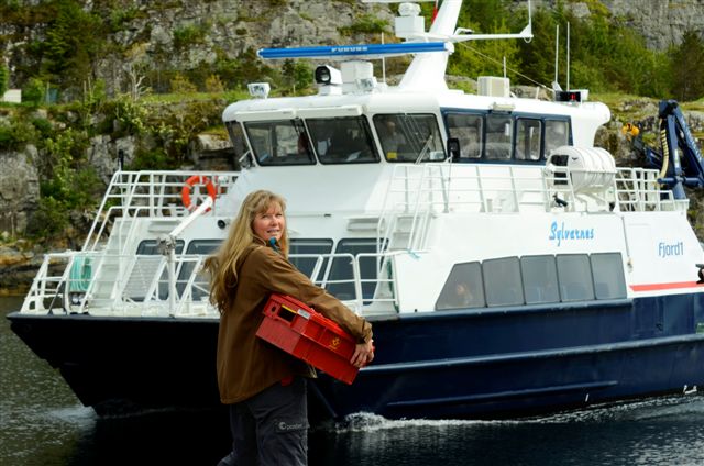 Dagelijks verzamelt Sisca op haar route ook post die verzonden moet worden. Iemand die een poststuk wil versturen en niet zelf naar de boot kan komen, hangt een gele reflector uit de brievenbus. Voor de postbode het teken dat er iets in zit dat mee moet. Deze post wordt aan de kapitein van de boot overhandigd, die op zijn beurt Sisca de post voor het eiland meegeeft. Even snel een praatje en weg is de boot alweer. Na aan de kade de post op rijroute gesorteerd te hebben, begint ze aan de bezorging. Eerst richting de adressen aan de oostkant. Daarna volgt de zuidelijke route, waarna de postbussen worden aangedaan op weg naar haar eigen huis. Inmiddels is Sisca’s nieuwe woonplek op Hovden de boerderij van haar Noorse levensgezel Sverre: een geboren en getogen Hovdenaar, met wie ze alweer jaren samen is.” Het bezorgen van de post duurt gemiddeld twee uur. Maar wanneer Sisca her en der wordt aangesproken kan de dag flink uitlopen. “Vaak willen mensen iets met me delen. Dan staat de koffie op tafel en komen de verhalen los. Op die manier krijg ik heel wat te horen en raak ik soms betrokken bij allerlei probleemsituaties. Grappend word ik weleens ‘Hovdens crisiscentrum’ genoemd. Ik vind het niet erg, je bent er tenslotte voor elkaar op zo’n klein eiland.”