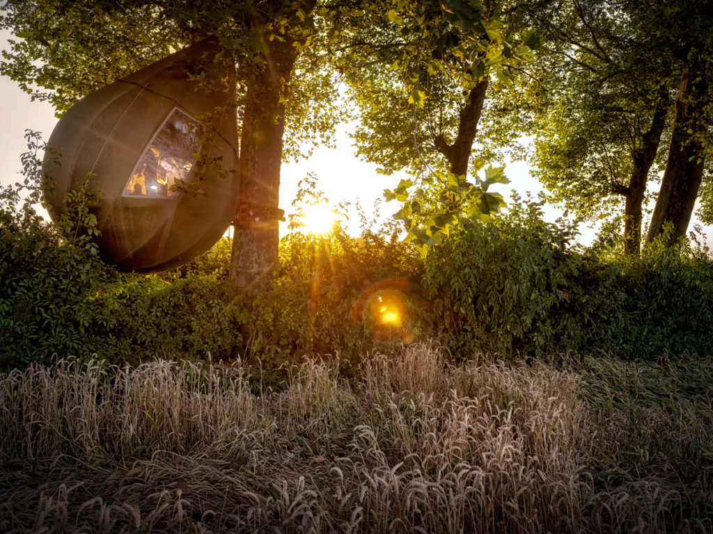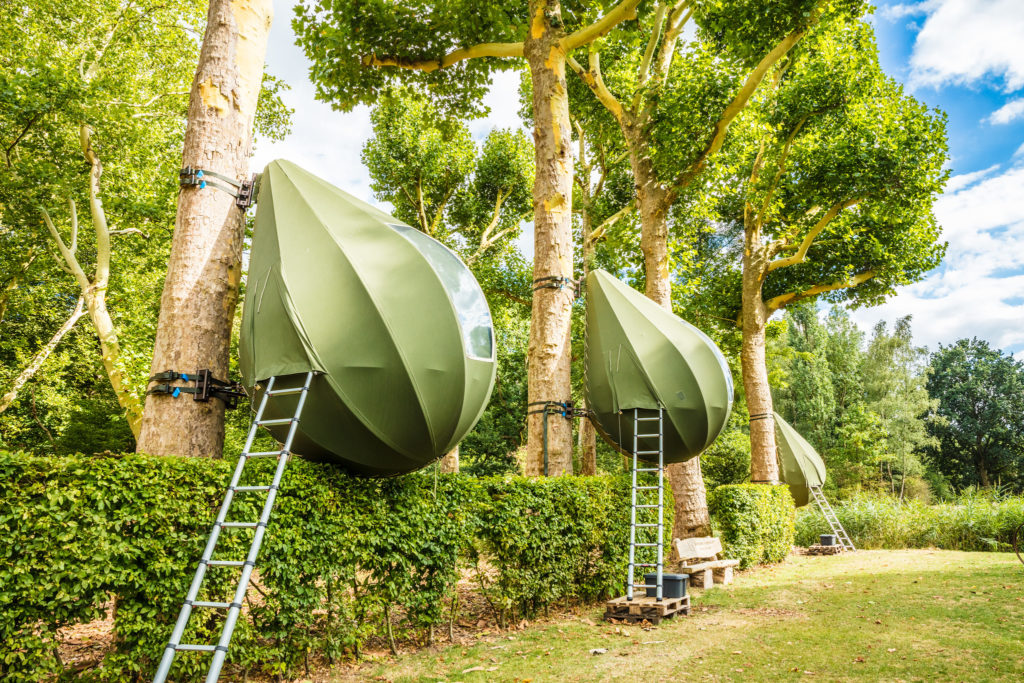 Als je na alle cultuur en gewandel, de nacht avontuurlijk door wil brengen, is een overnachting in de druppelvormige boomtent aan te raden. Deze zijn geschikt voor twee volwassenen en twee kinderen. De boomtenten hangen aan de dreef naast Kasteel Hex en zijn ontworpen door de Nederlandse kunstenaar Dré Wapenaar. Hier vind je meer informatie.